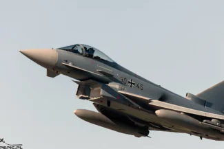 Już zapowiedzi sprawiły, że tętno skoczyło do góry. Gwiazdami dnia były niemieckie Eurofightery EF 2000 z 73. Skrzydła Lotnictwa Taktycznego „Steinhoff”. Widok tych maszyn operujących ramię w ramię z naszymi legendarnymi MiG-ami-29 oraz belgijskimi Viperami (F-16) był absolutnie bezcenny.